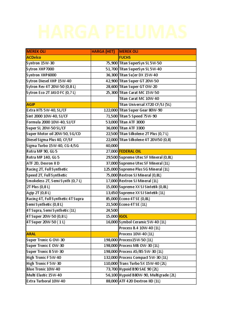 Daftar Harga Pelumas Pdf Document