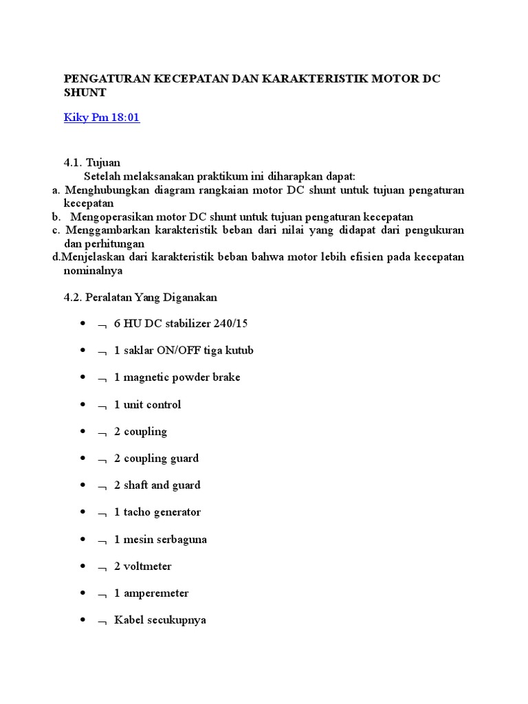 Pengaturan Kecepatan Dan Karakteristik Motor Dc Shunt Kiky