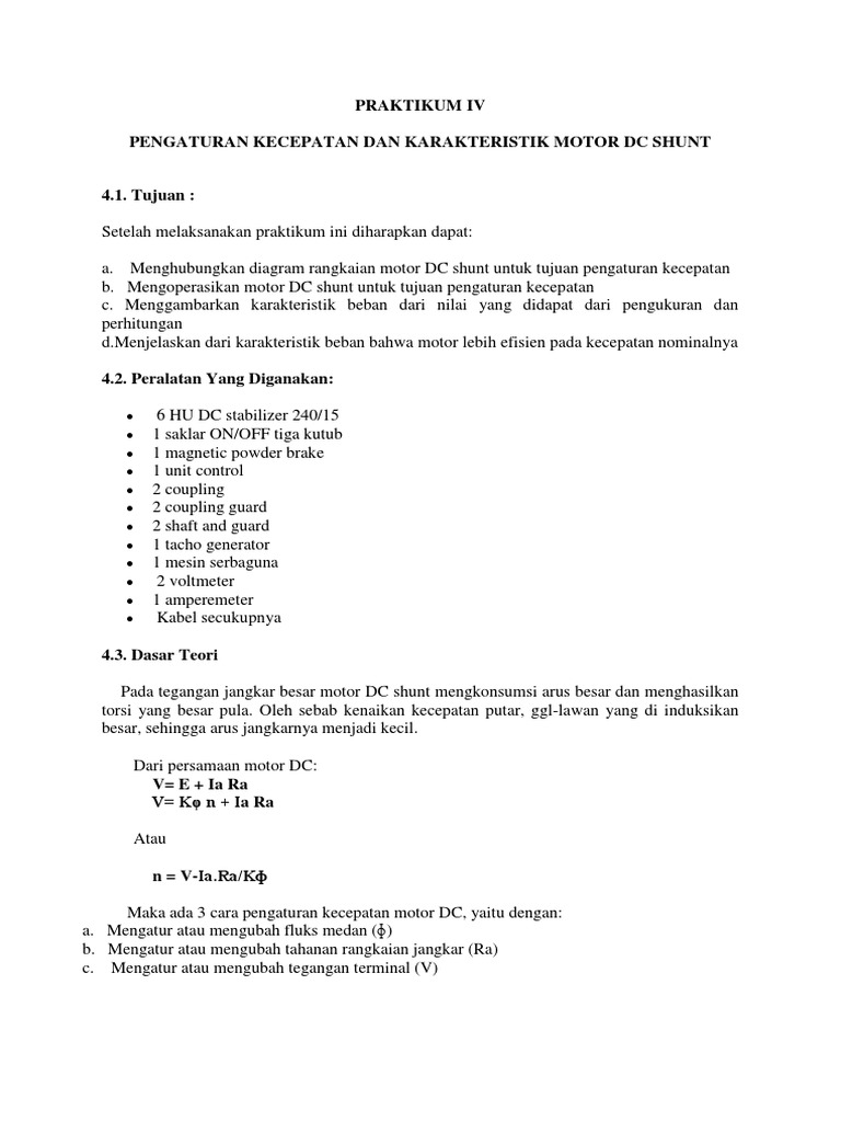 Pengaturan Kecepatan Dan Karakteristik Motor Dc Shunt